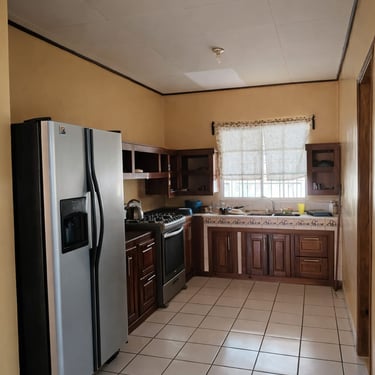 La casa está diseñada para brindar confort y funcionalidad , 3 habitaciones , habitación principal amplia con baño privado espacioso , 2 habitaciones secundarias con acceso a baño compartido amplio , area social de concepto abierto Sala, comedor y cocina integrados en un ambiente amplio y bien iluminado , 2 cocinas , Cocina moderna , Cocina tradicional con hornilla (ideal para un estilo más típico o uso adicional), area de lavandería