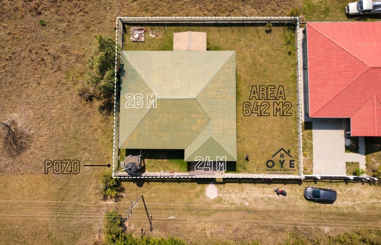 La propiedad cuenta con un área total de 642 m², distribuidos en 24 metros de frente 26.75 metros de fondo ,un espacio ideal para disfrutar comodidad, amplitud y futuras ampliaciones.